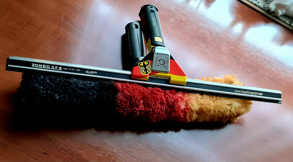 Hebe deine Fensterreinigung auf das nächste Level mit dem Sörbo Fensterwischer in Deutschland-Flaggen-Design - ein markantes Profi-Werkzeug, das Leistung und Stil vereint. Diese limitierte Edition bietet: